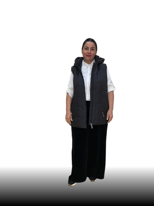 ქალთა შავი ვესტი დიდი ზომის მოსახსნელი კაპოტი - მრავალფუნქციური და კომფორტული დიზაინი