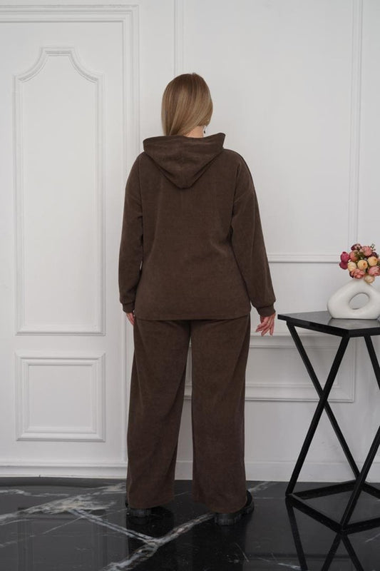 სპორტული კოსტიუმი კაპოტით, კაპუჩინოს ფერით - კომფორტული და მოდური ადგილისთვის