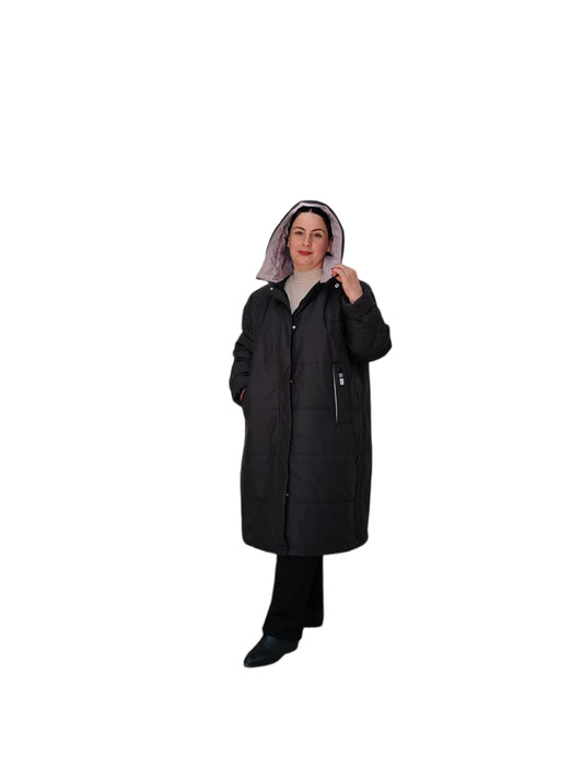 ქალის გრძელი ქურთუკი ჯორჯიაში, დიდი ზომები, მოდელი 2025 - Just Econom