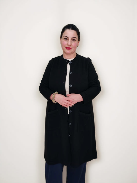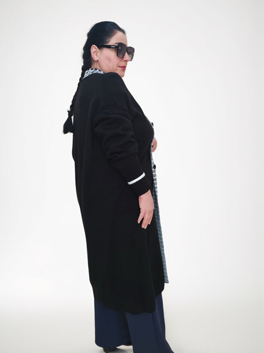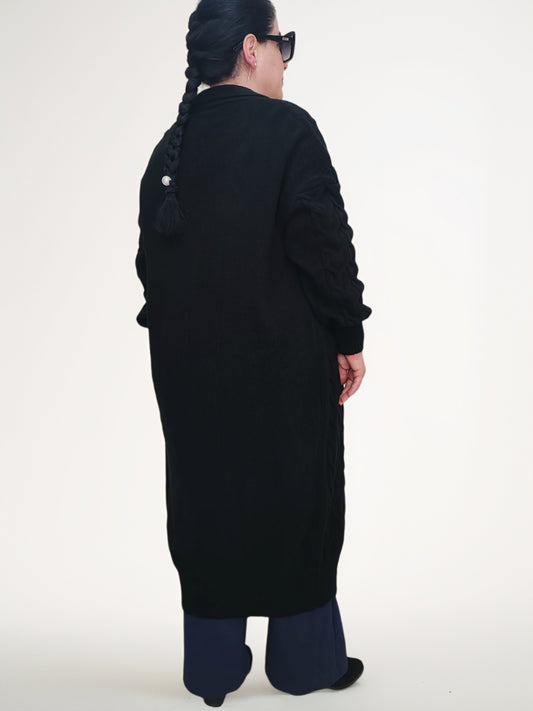 Black women's cardigan with pockets in large size - a comfortable and stylish choice
