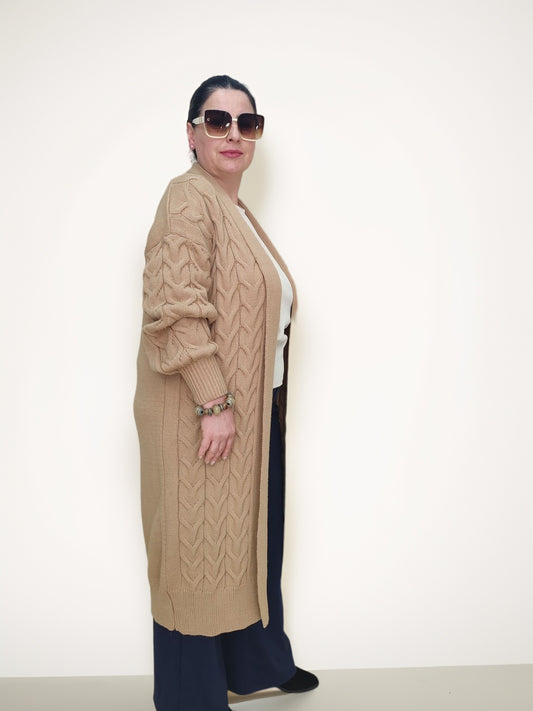 Women's warm brown cardigan in large size - a stylish and comfortable choice for everyday and special occasions