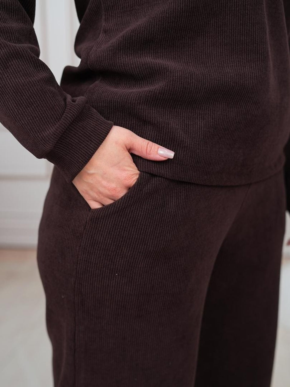 ეს კოსტიუმი უნივერსალურობის გამო შესანიშნავი არჩევანია ყოველდღიური გამოყენებისთვის. დამზადებულია მაღალი ხარისხის მასალისგან, რაც უზრუნველყოფს კომფორტსა და სითბოს ამას. მისი დიზაინი კი ისეა შექმნილი, რომ ნებისმიერ ფორმას უხდება და საიმედოდ ასწრებს თქვენი სხეულის სილუეტის ხაზვას. ეს თბილი კოსტიუმი კარგად უხდება ქურთუკს ან ჟილეტს .