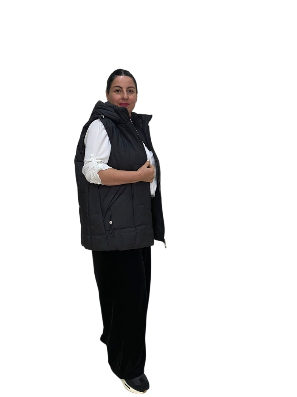 Этот элегантный и изящный женский чёрный жилет не просто практичен. Он стильный и функциональный, поможет вам выразить свою индивидуальность и дополнит ваш повседневный образ. Этот изысканный и удобный жилет станет незаменимым выбором для повседневного гардероба, особенно для женщин, которые ценят моду и функциональность.